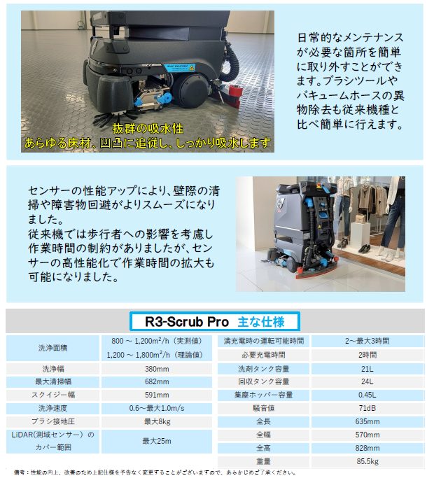 ロボットスクラバー R3-Scrub Pro ロボットクリーナー ビルメンテナンス業 ロボットスクラバー R3-Scrub Pro 動画 次世代のロボットクリーナー ※カタログのダウンロードはこちらをクリックしてください。