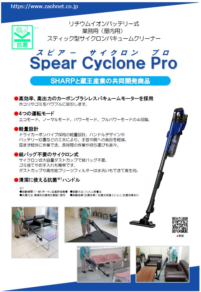 スピアーサイクロンプロ カーペット清掃機 ビルメンテナンス業 スポーツアミューズメント施設 ホテル・旅館・温泉・式場 病院・介護施設 デパート・ショッピングモール ※カタログのダウンロードはこちらをクリックしてください。